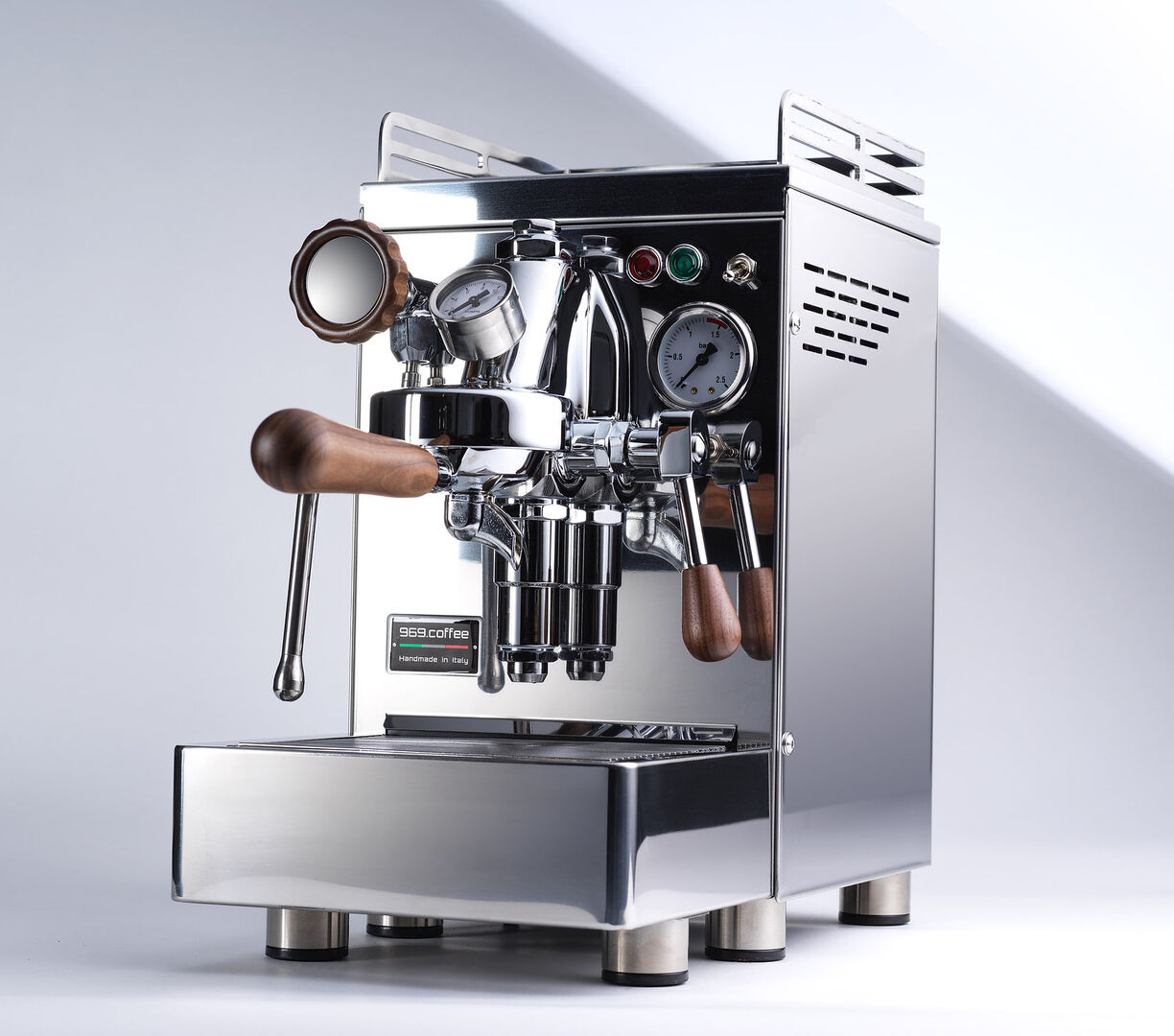 | Ausstattung | Zweikreiser-Thermosiphonsystem, Edelstahl-Karosserie, Walnuss-Holz-Siebträger |
