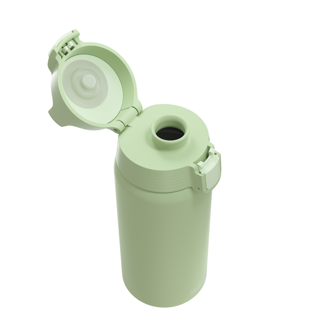 Die Sigg Shield Therm ONE Eco Green Trinkflasche mit ihrem Einhand-ONE-Top-Verschluss und das auf optimalen Trinkfluss ausgelegte Mundstück sorgen für hohen Komfort.