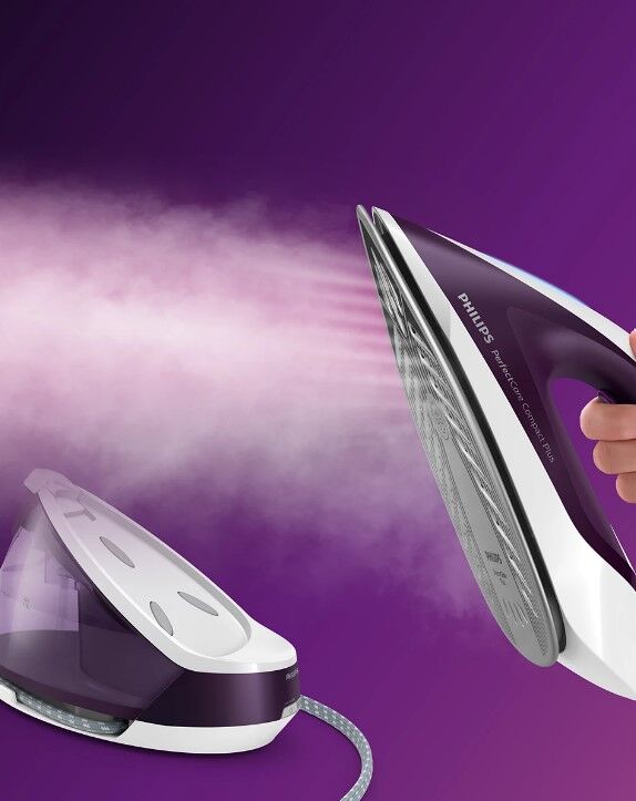 Die Philips PerfectCare Compact Plus Dampfstation: So schnell und bequem, dass Sie sich um Brandflecken auf Ihrer Kleidung keine Sorgen mache müssen. Und mit doppelt so viel Dampf wie mit einem Dampfbügeleisen bügeln Sie schneller.